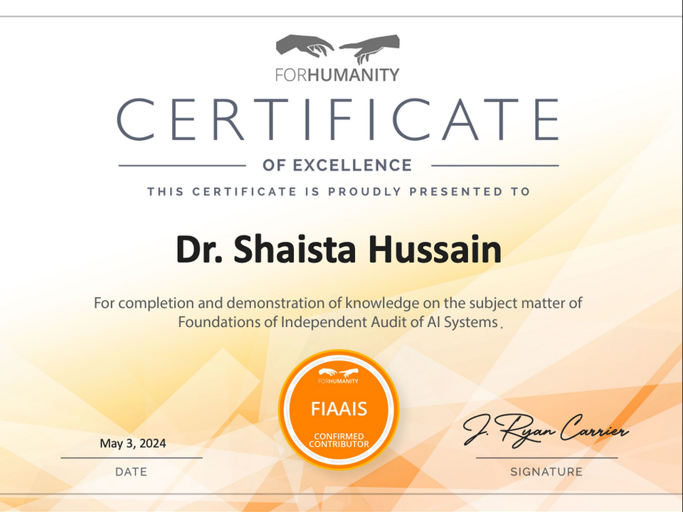 Blending medical precision with technological expertise, Dr. Hussain identified critical shortcomings in AI, particularly in quality assurance, regulatory compliance, and cybersecurity inspiring her to found SAIF CHECK, a company dedicated to advancing AI integrity, governance, and security at a time of accelerating technological adoption.